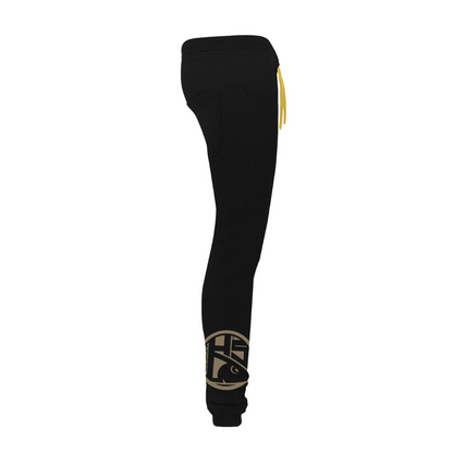 They feature drawstrings in contrast color, ribbed elastic waistband and ankle cuffs, they have two pockets on the sides and one on the rear.