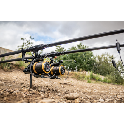 Die starke Achse bietet die nötige Power, um große Karpfen und Welse beim Drill zu kontrollieren.